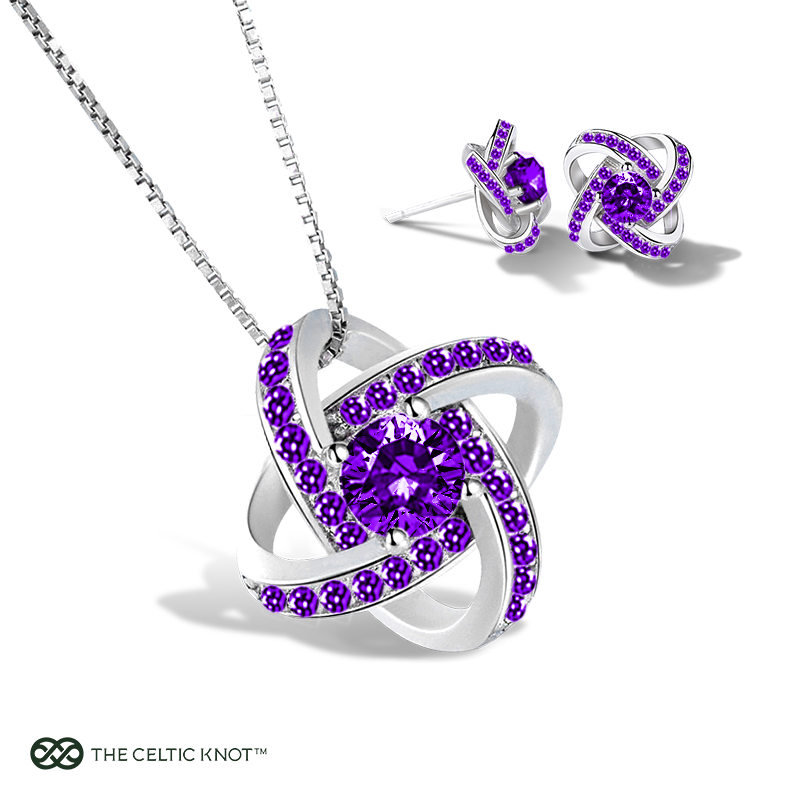 Our Amethyst Duo Set bundles the Celtic Knot pendant and matching earrings into one irresistible February birthstone gift. Why pick one when you can delight her with both? Each piece shines with that soothing lavender hue and intricate knot design, creating a harmonious set from neckline to earlobes.