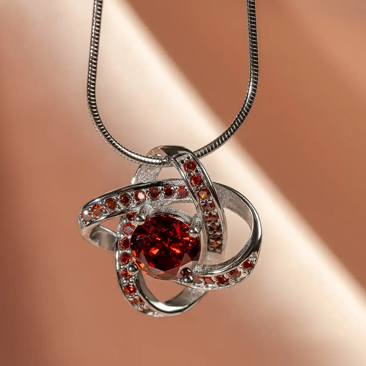 The Celtic Knot™ 18K Ruby Pendant blazes with the intense red of July’s birthstone, dangling right over the heart – exactly where such a passionate symbol belongs. The ruby at its center gleams like a tiny ember, encircled by elegant knotwork finished in cool 18K white gold.