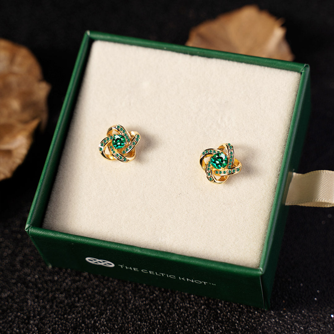 The Celtic Knot™ Emerald Earrings in 18K Yellow Gold pair the lush green of May’s gemstone with the rich glow of gold for an irresistibly classic look. Each earring showcases an emerald-hued stone nestled in ornate yellow gold knotwork, creating drops that feel like they came straight out of an Irish fairytale.