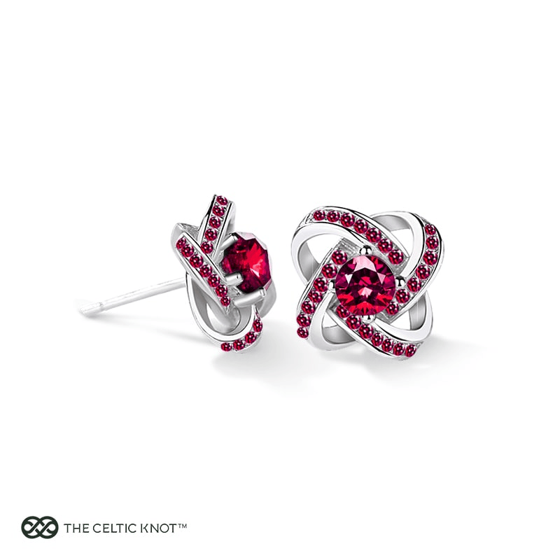 The Celtic Knot™ 18K Garnet Earrings bring January’s vibrant birthstone to life, framing her face with the warm glow of the Emerald Isle. Each earring showcases a garnet-red stone nestled in an eternal knot, symbolizing the endless connections of love and friendship.