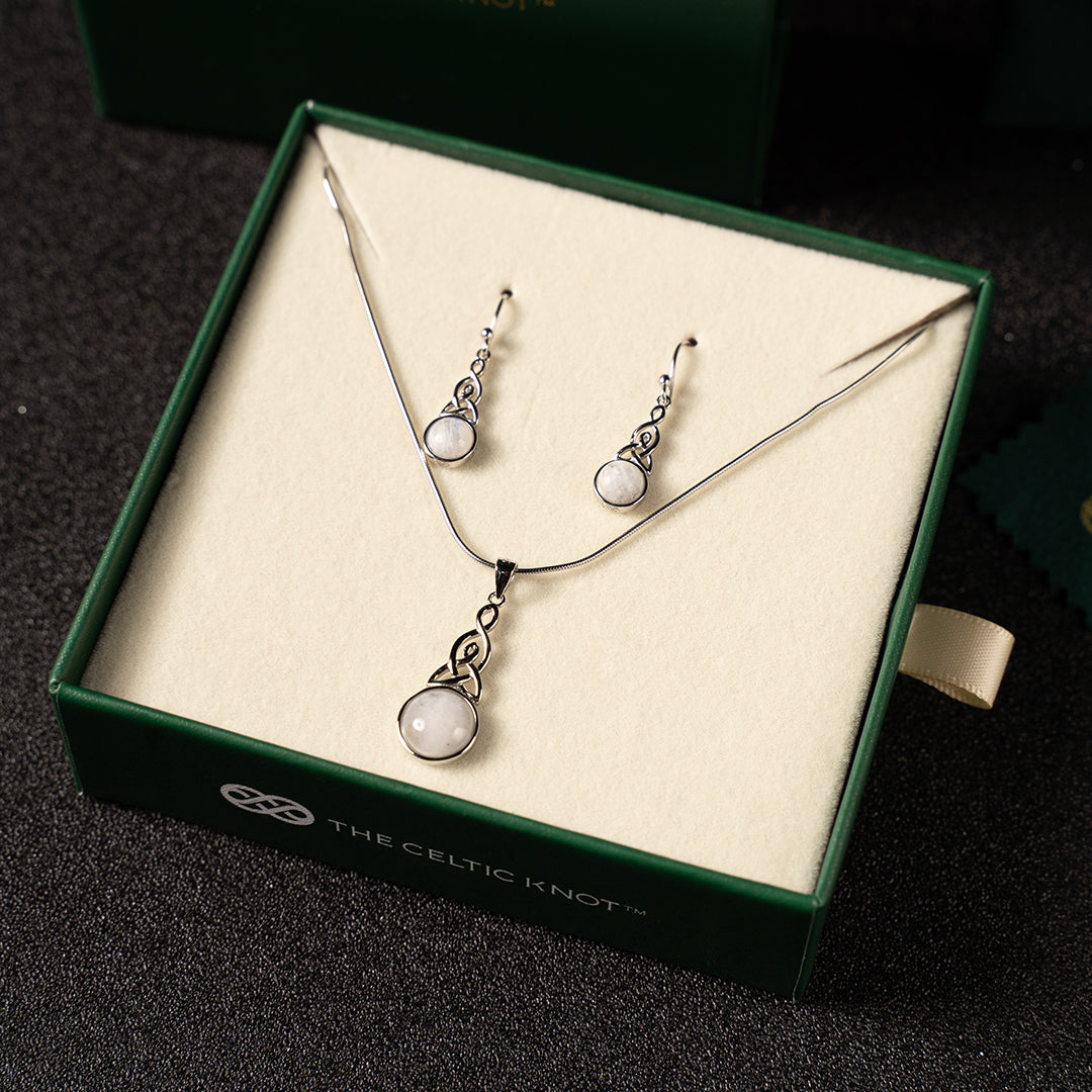 The Celtic Mother™ 2-Piece Moonstone Duo Set combines our beloved pendant and earrings into a matching set that celebrates Mom from heart to ear. It’s the ultimate mother-and-child jewelry duet: the pendant rests near her heart while the earrings frame her smile, each piece adorned with the Celtic Mother knot and a glowing moonstone. Worn together, they tell a beautiful story of family love and Irish heritage in a way that’s elegant yet endearingly personal. (Think of it as giving her a double dose of that Celtic charm she adores.)