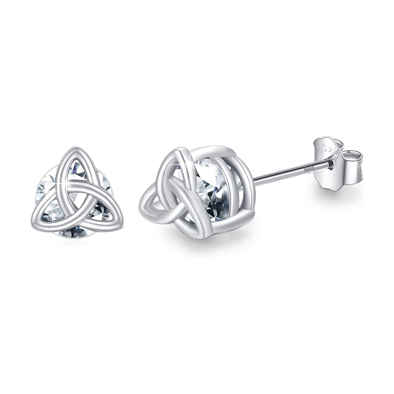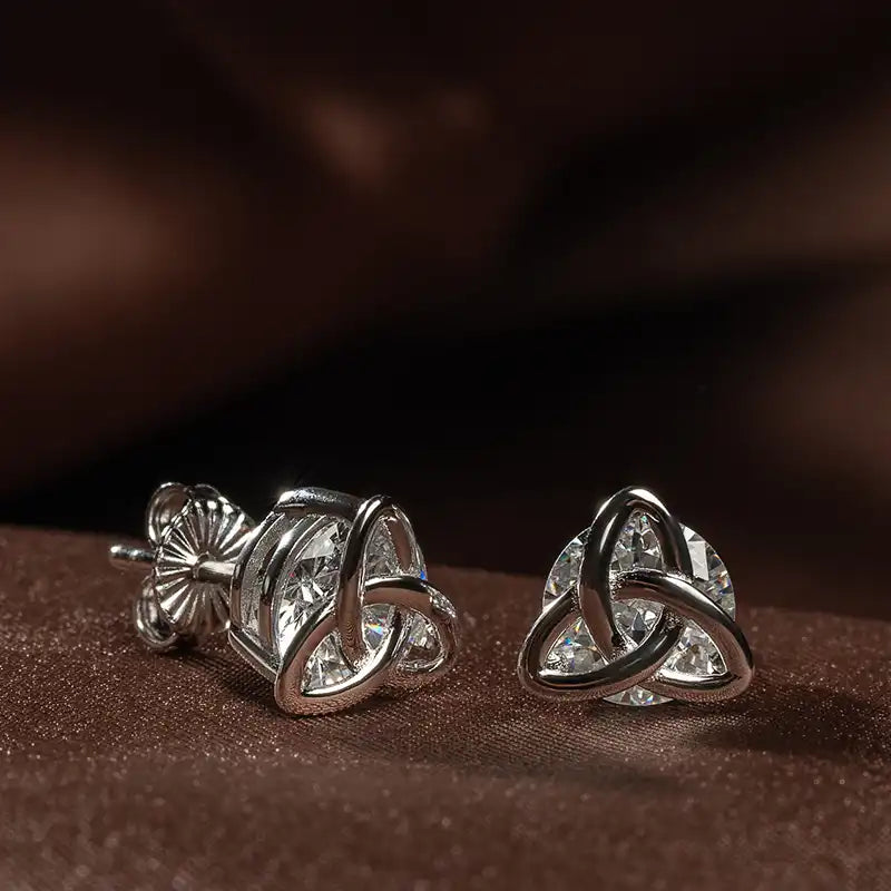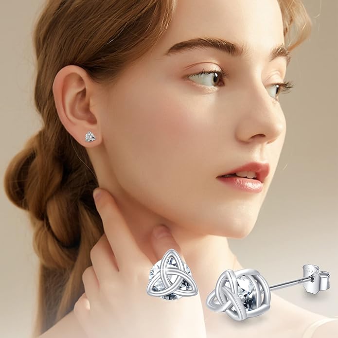 Each earring features the Trinity Knot – an emblem of perpetual protection – so when you wear them, you’re literally surrounded by blessings (one on each side!). Think of the three looping corners as a gentle reminder of life’s trilogy: perhaps faith, hope, and love, or the cherished roles of daughter, mother, and grandmother. Every time these earrings catch the light, it’s as if they’re whispering an old Celtic wish: “May your soul be protected and your heart be cherished, always.” And trust us, they do catch the light – the natural white zircon gems twinkle with every turn of your head, adding a halo of sparkle that gets noticed.