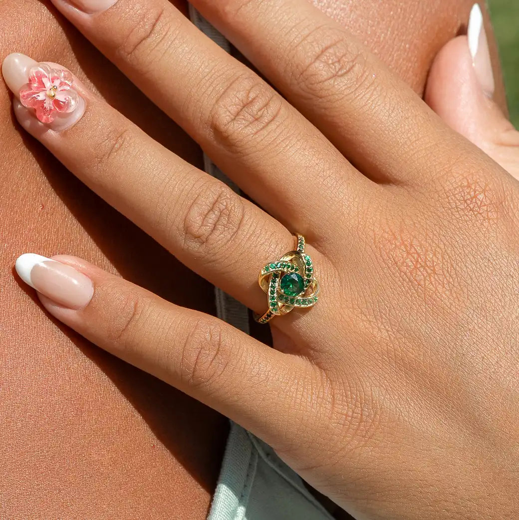 Give this ring to the one who makes your life golden, especially if they have a May birthday or a deep love for Irish culture. Every glance at that green-and-gold combination will remind them of the bond you share and the bright future you envision together.